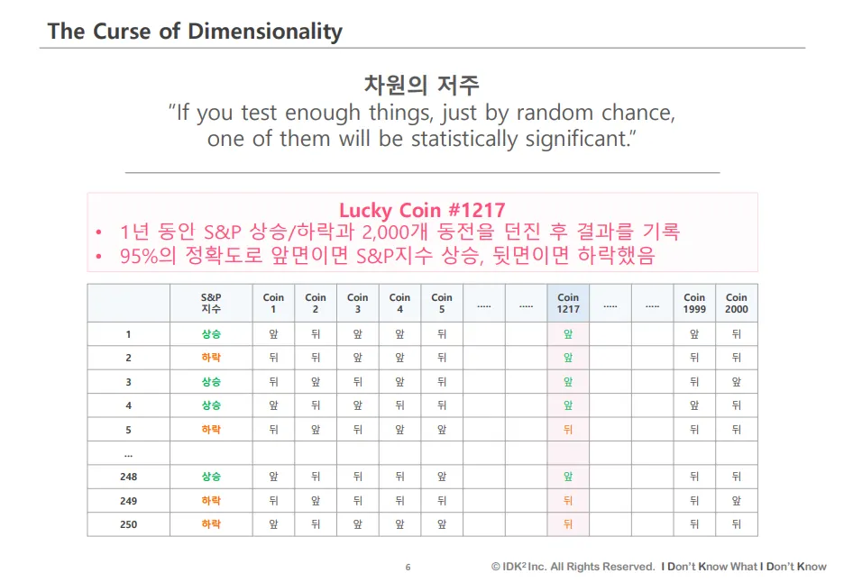 -차원의 저주: 다른 요소들도 고려해야 함. 단순하게 두 개의 변수만 보고 판단을 내리기는 어려움