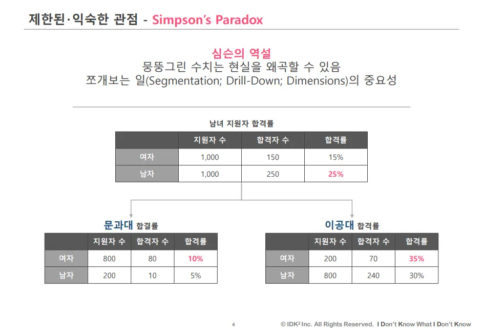 -심슨의 역설: 가능한 한 쪼개서 보는 게 가장 현실을 잘 표현