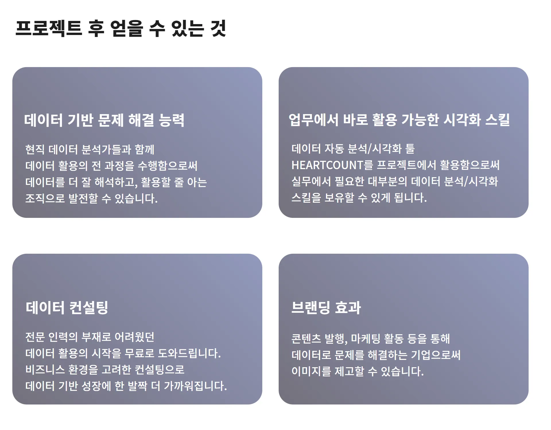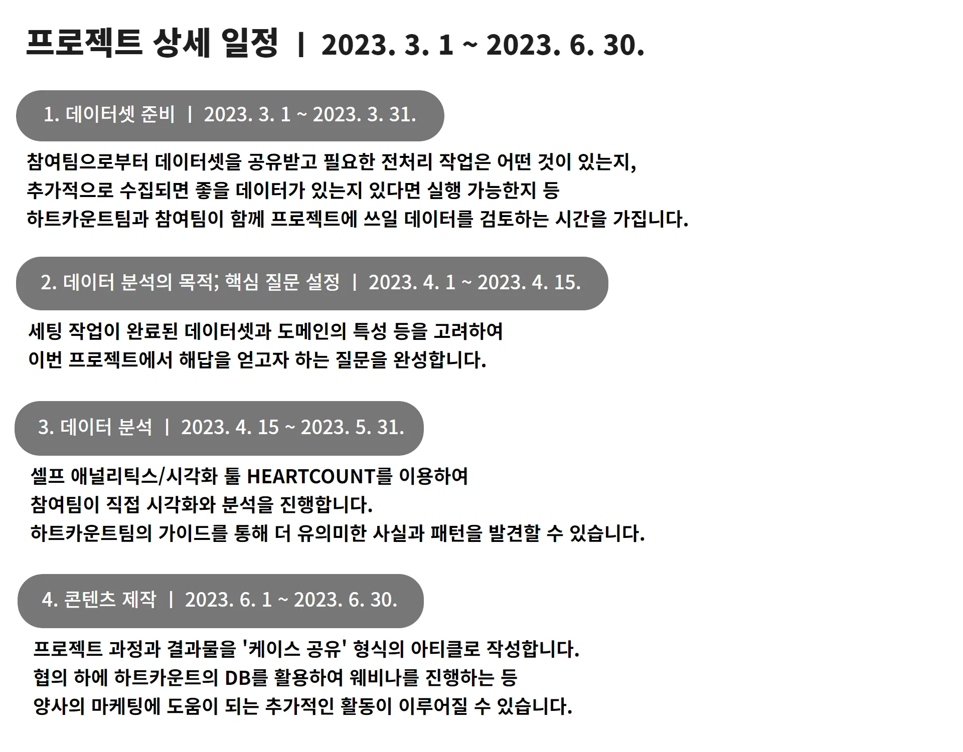 프로젝트 기간 동안, 애널리틱스툴 HEARTCOUNT(하트카운트) EXPERT 플랜을 무료로 사용할 수 있어요.