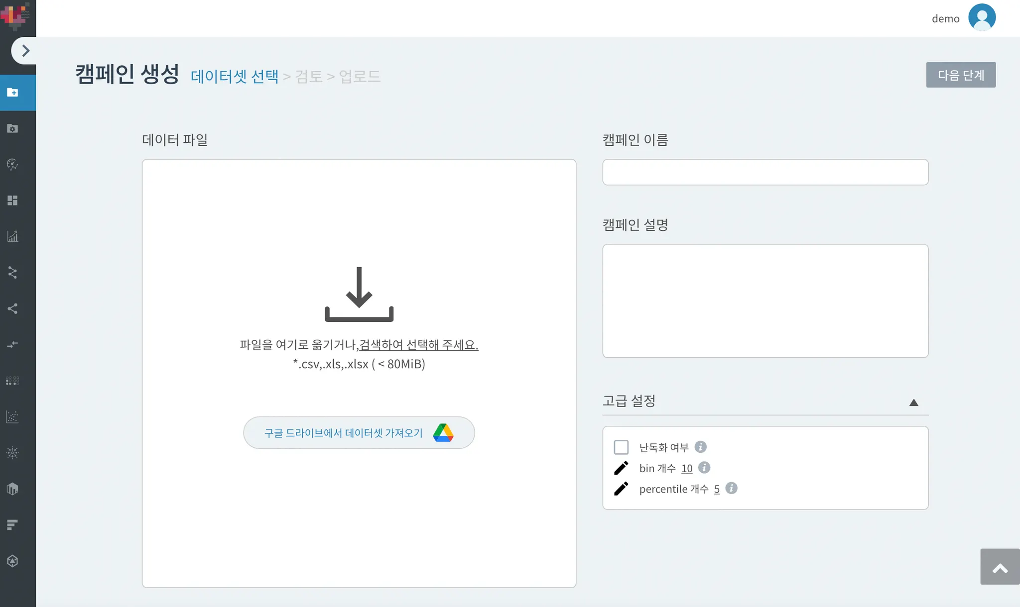 데이터 난독화 여부와 bin의 개수, percentile의 개수를 사용자가 직접 설정할 수 있습니다.