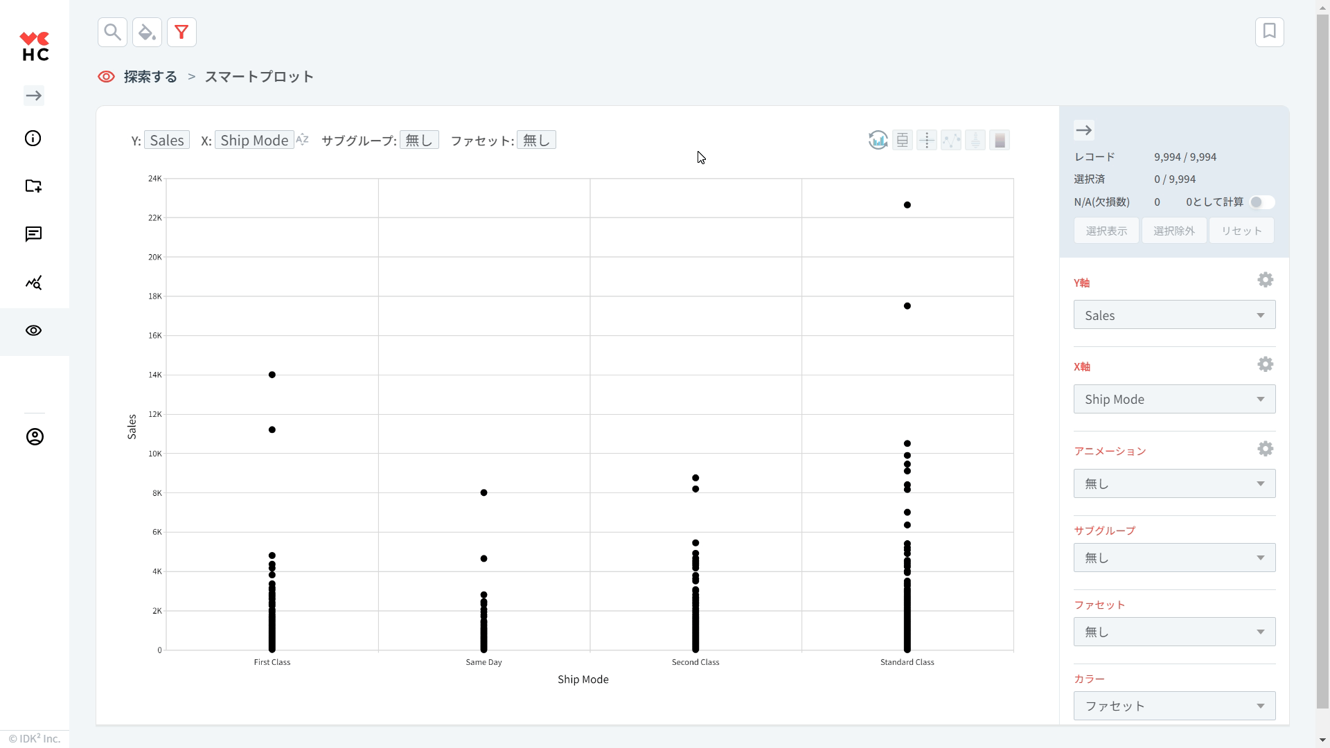 分析するの [セグメンテーション] メニューから SQLクエリ、表形式でエクスポートします。