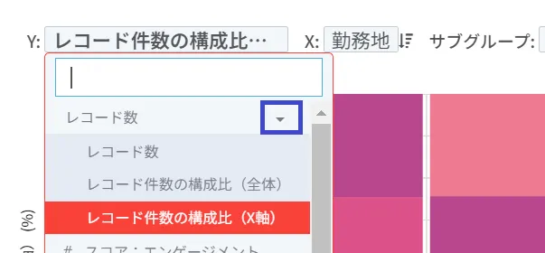 レコード数をクリックすると、Y軸をレコード件数やその比率(構成比)に設定することができます。