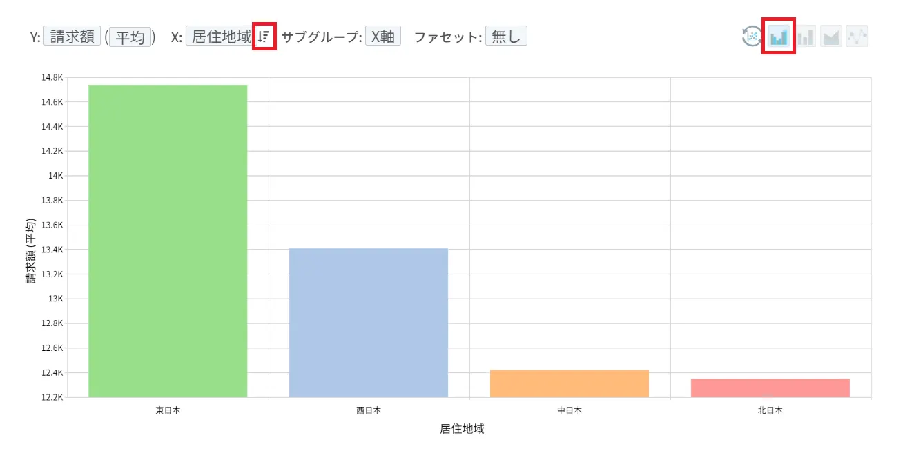 サブグループの左側のアイコンをクリックすると、Y軸の値の降順で並び替えることができます。