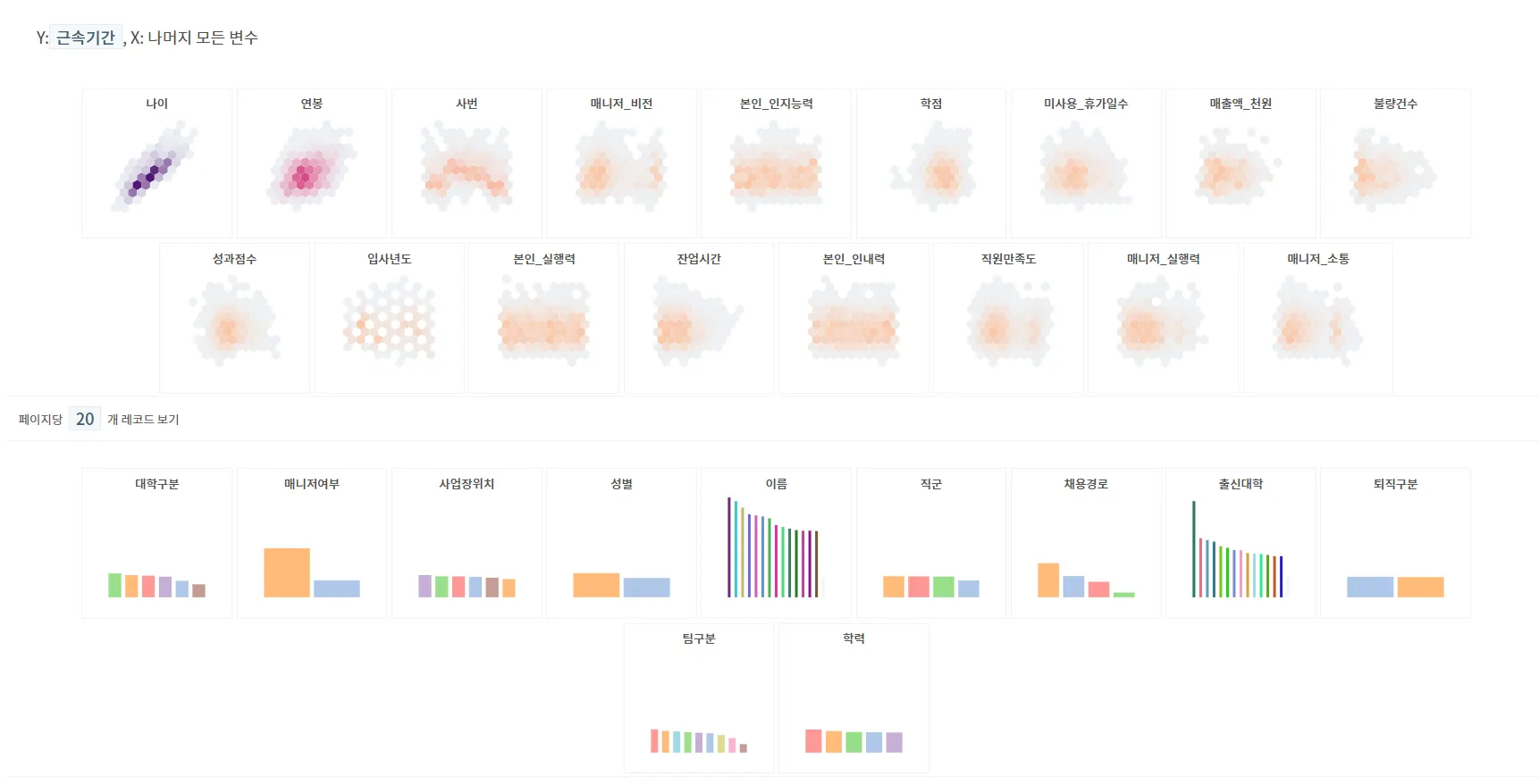 스마트 플롯 > X축: 수치형 변수, Y축: 수치형 변수 설정 > 히트맵